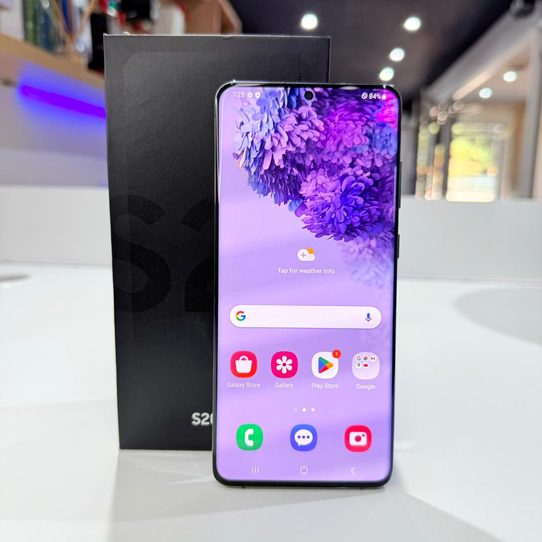 Experience premium performance with this Used Samsung Galaxy S20 Plus in Cosmic Gray. Featuring 256GB of storage, it offers ample space for your apps, photos, and files. The device comes complete with its original box, ensuring a reliable purchase. Enjoy a stunning display and powerful features at a great value. Grab this sleek smartphone now and stay connected in style.